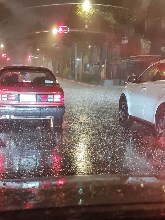Usuarios de redes sociales difundieron imágenes de las fuertes lluvias y la granizada registrada esta noche.
