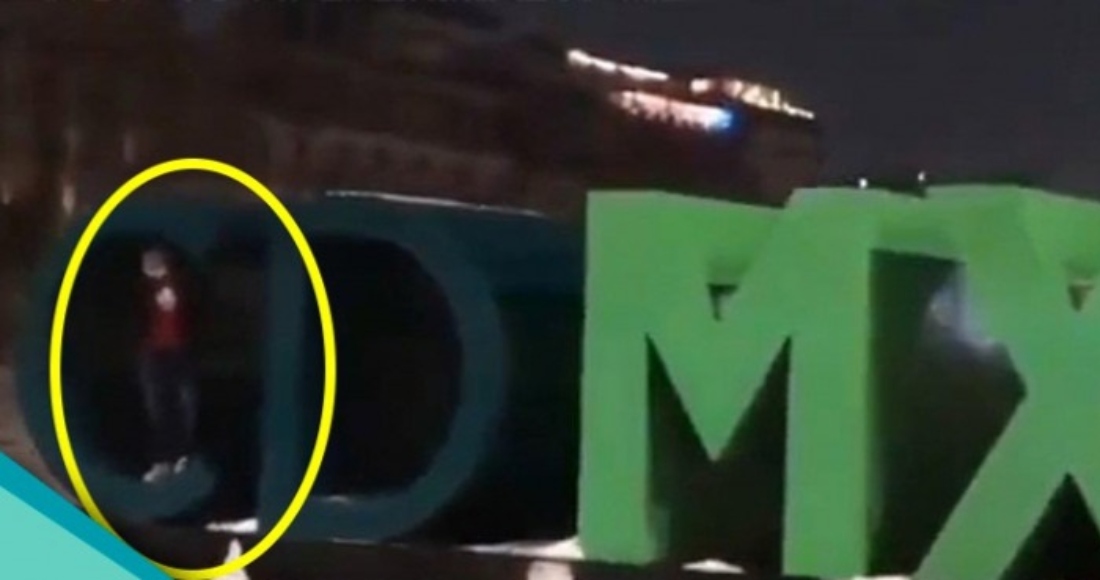 El hombre quedó atrapado en la letra C, donde se resguardó de la fuertes lluvias, sin embargo al terminar no pudo abandonarlo debido a que la plancha del Zócalo quedó inundada.