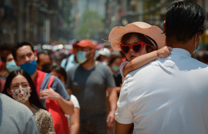 Fotografías del fotoperiodista Mario Jasso publicadas esta tarde en la agencia Cuartoscuro muestran aglomeraciones en las principales calles del Centro Histórico. En las imágenes se ve a personas de distintos grupos de edad, incluso niños, sin cubrebocas.