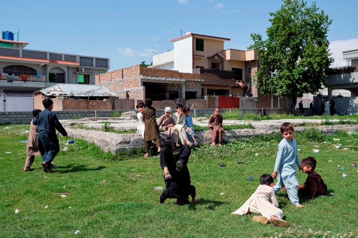 A su lado, el pequeño Faisal explica que el lugar donde se encuentran se conoce como el "recinto Osama", pero que para ellos lo importante es que tienen un lugar donde jugar al críquet, fútbol o a las "escondidas".