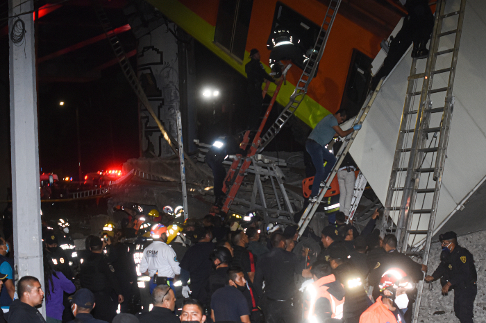 La noche del lunes 3 de mayo, al menos 79 personas resultaron heridas y 24 más perdieron la vida al desplomarse un puente de la vía elevada de la Línea 12 del Metro de Ciudad de México, en la estación Olivos, y caer dos vagones sobre una avenida por la que circulaban multitud de vehículos.