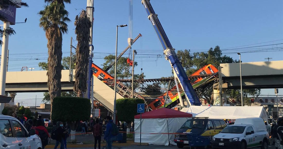 El lunes a las 22.22 horas (3.22 GMT del martes) cedió una viga de un puente elevado de la Línea 12, entre la estaciones Olivos y Tezonco, en el sur de la capital, provocando la caída de un tren con pasajeros que quedó encallado en forma de "V".