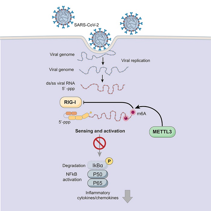 Rana y su equipo descubrieron anteriormente que m6A desempeña un papel importante en las infecciones por el VIH y el virus del Zika. En su último estudio, los investigadores descubrieron que la enzima humana METTL3 añade grupos metilo para introducir m6A en el ARN del SARS-CoV-2.