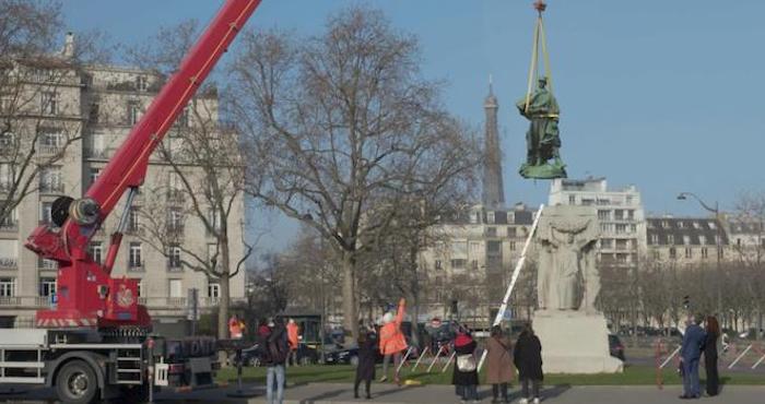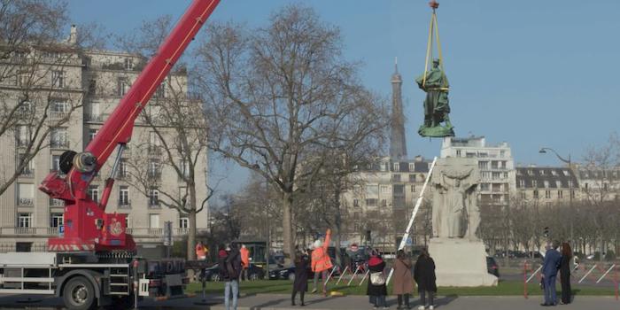 Un video transmitido en la revista Regards mostraba el acto protocolario con los falsos funcionarios alrededor de la estatua, envuelta con las cuerdas que los falsos trabajadores ponían para desmontarla. La policía pasó varias veces por el lugar pero no notó nada raro, en la parca normalidad de cualquier acto burocrático. Enseguida, una grúa de color rojo aparecía en el fondo de la escena, extendiendo su brazo lista para maniobrar el retiro de la estatua que solamente ocurrió en el video, como efecto de ciencia ficción y pronto se viralizó en redes sociales provocando todo tipo de reacciones a favor y en contra. Muchos llegaron hasta la plaza para corroborar si la estatua seguía o no ahí. Al cabo de unas horas, la alcaldesa Anne Hidalgo, hija de exiliados españoles, emitió un comunicado para garantizar que el monumento seguía intacto.