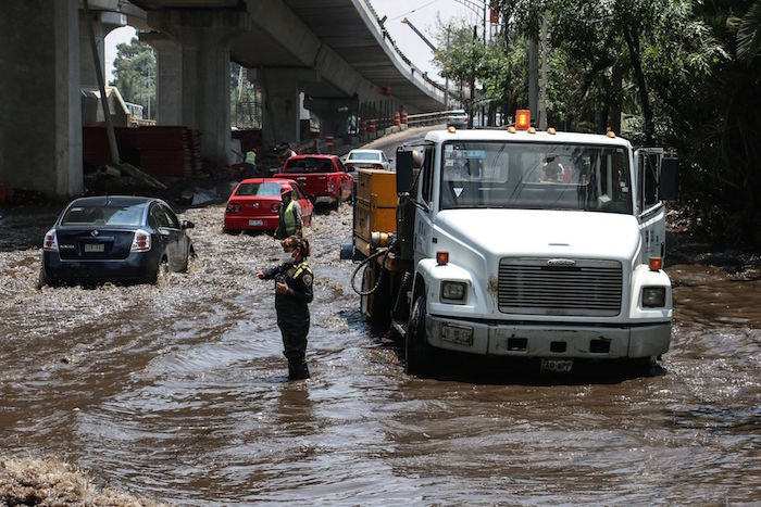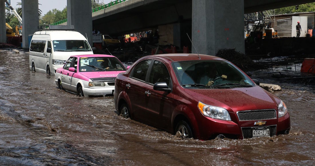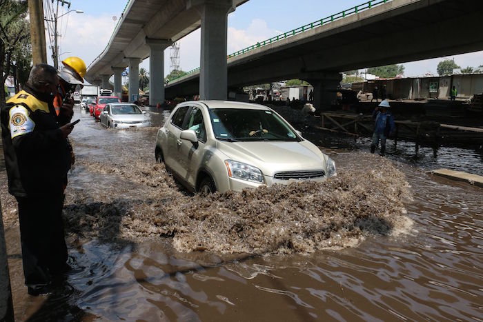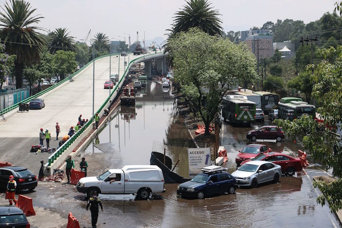 Inundación del puente Periférico-Cuemanco presentada durante la mañana de este sábado. Foto: Rogelio Morales, Cuartoscuro.