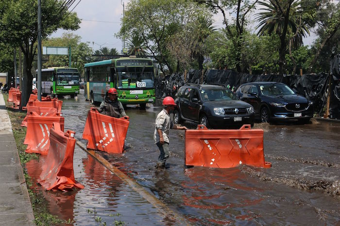 Al momento, para mitigar los encharcamientos de la fuga, se trabaja con equipos hidroneumáticos y bombas de achique que permiten el desalojo del agua en vialidades, así como en la zona de maniobras.