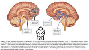 Los estudios de imágenes cerebrales indican que los circuitos alterados en personas con obesidad son los mismos que se encuentran alterados en personas con adicción a drogas de abuso y pone en evidencia un desequilibrio entre los que motivan las conductas (por su implicación en la recompensa y el condicionamiento) y los que controlan e inhiben las respuestas de alimentación.