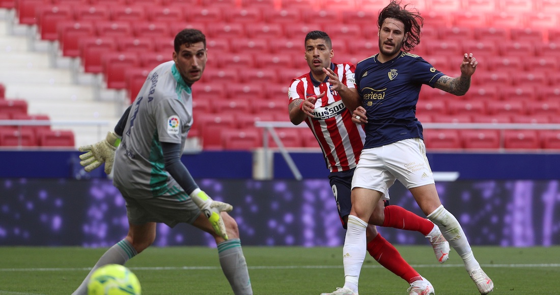 Madrid, 16 may (EFE).- El Atlético de Madrid ganó 2-1 al Osasuna en el Wanda Metropolitano tras remontar el tanto del croata Ante Budimir con goles del brasileño Renan Lodi y el uruguayo Luis Suárez, un resultado que le permite depender de sí mismo para ganar LaLiga Santander, pese al triunfo del Real Madrid en Bilbao (0-1).