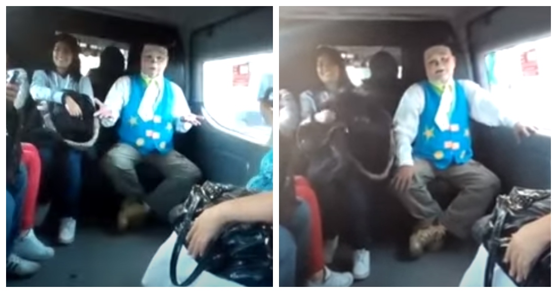 El animador retrató con chistes los niveles de delincuencia que usuarios de transporte sufren a diario y fue recompensado, no sólo con las risas de los pasajeros, sino también ayuda económica.