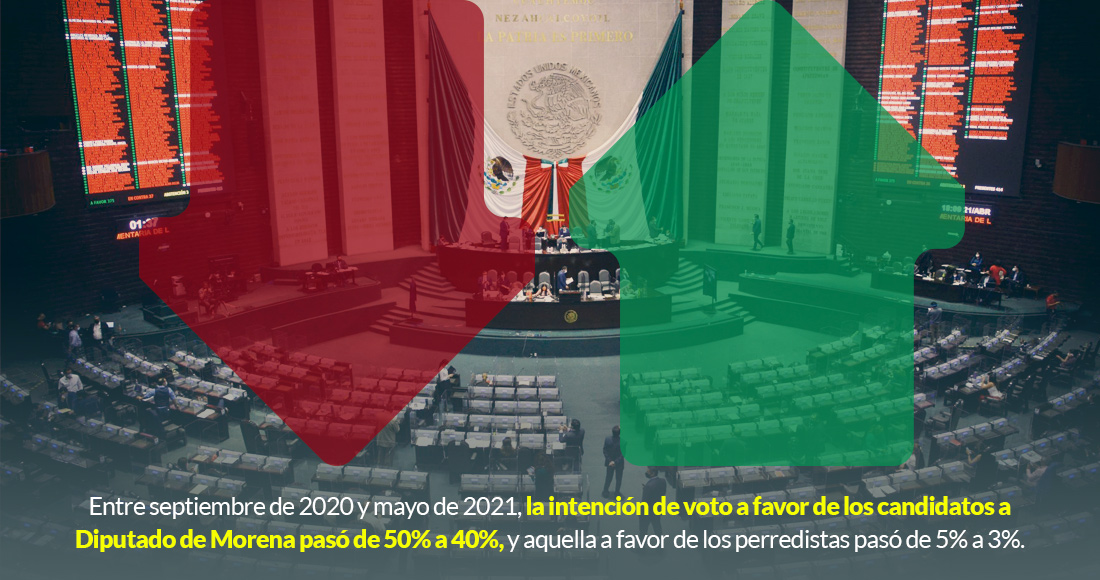 Entre septiembre de 2020 y abril de 2021, la intención de voto a favor de los candidatos a Diputado de Morena pasó de 50 a 43 por ciento, mientras que aquella a favor de los perredistas pasó de cinco a cuatro por ciento. Algo similar ocurrió con el apoyo a los partidos Verde Ecologista de México (PVEM), que también pasó de cinco a cuatro por ciento, y del Trabajo (PT), que pasó de cuatro a tres por ciento.