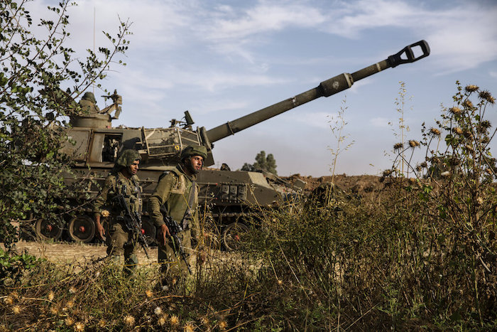 Dos soldados israelíes caminan junto a un tanque. Foto: Heidi Levine, AP.