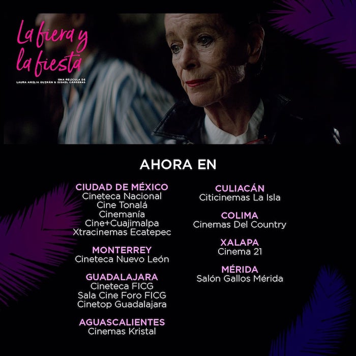 La fiera y la fiesta tuvo un paso por la Berlinale, y en México, en el Festival Internacional de Cine de Los Cabos en 2019. Se planeaba su estreno para mayo de 2020 pero debido a la pandemia este quedó suspendido. Ahora llega a salas de cine del país.