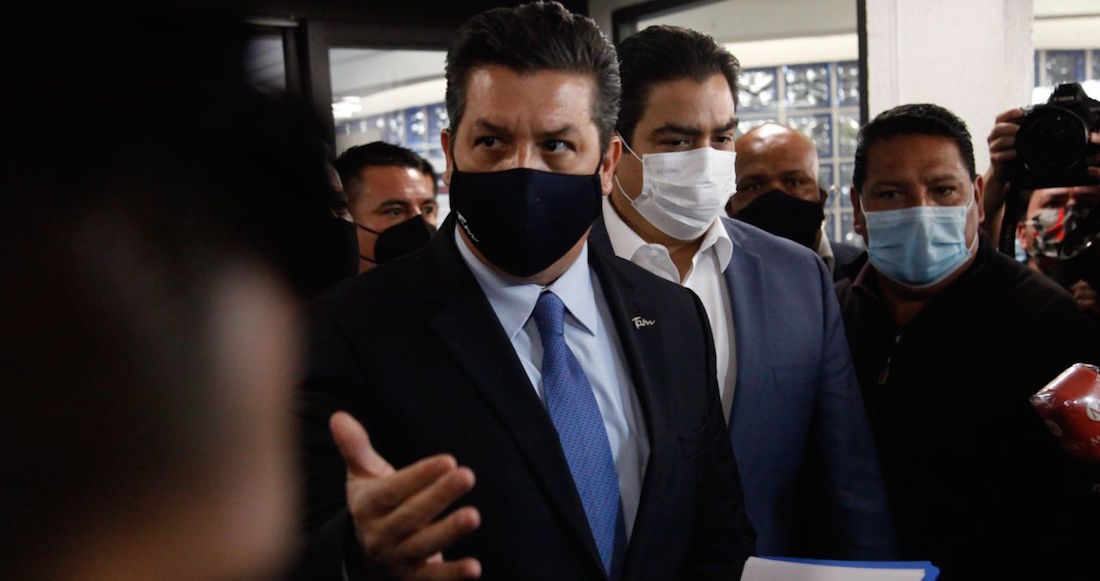 Después de que se presentó una orden de aprehensión en contra de García Cabeza de Vaca, se vieron algunas camionetas blindadas de los elementos de seguridad afuera de la Casa de Gobierno de Tamaulipas.