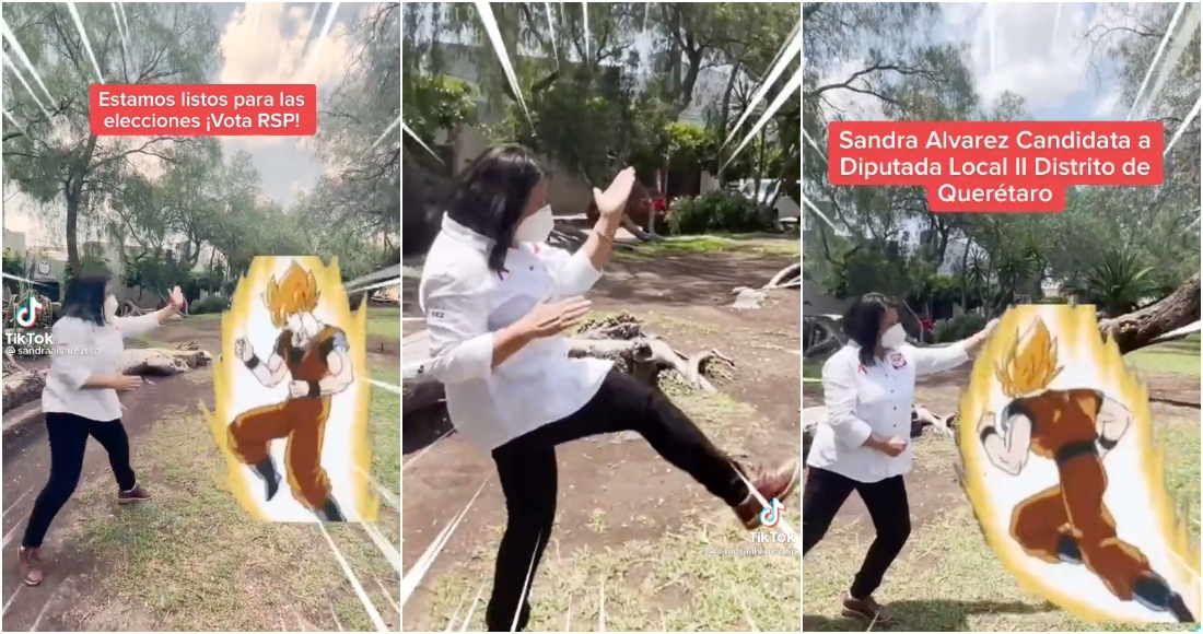 En su cuenta de TikTok, Sandra Álvarez publicó un video en el que "pelea" contra Gokú y dice que así se prepara para ganar las elecciones del 6 de junio. La grabación provocó burlas de usuarios de redes.
