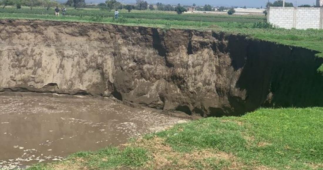 Socavón en cultivos de Puebla se vuelve nueva atracción turística