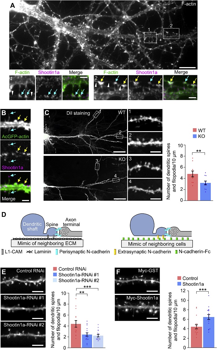 Los investigadores querían determinar si la fuerza mecánica se generaba en las espinas dendríticas mediante el acoplamiento mediado por shootin1a de la actina y las moléculas de adhesión celular -proteínas de la superficie celular que unen a las células en las sinapsis- de forma similar a lo que habían observado en los axones.