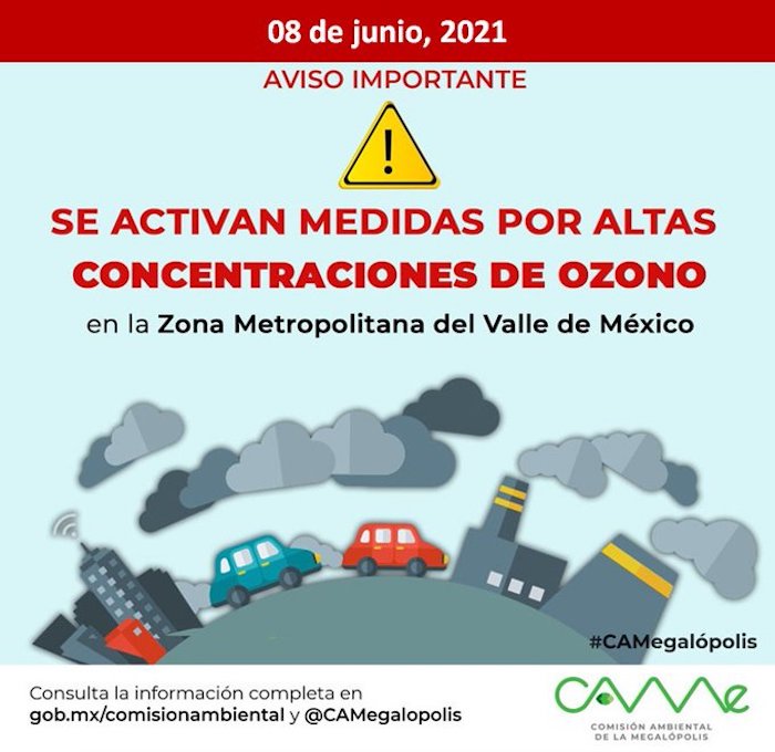 La Comisión Ambiental de la Megalópolis informó esta tarde que se activarían medidas por altas concentraciones de ozono en la Zona Metropolitana del Valle de México. Las lluvias frenaron las acciones.