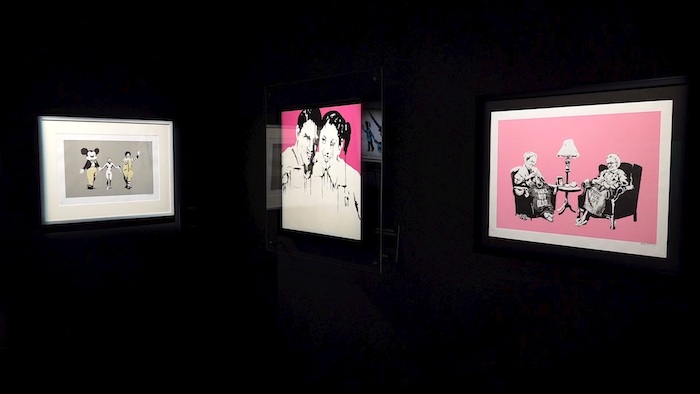 Más de 70 obras, autentificadas y prestadas por coleccionistas privados de todo el mundo, componen esta exposición, emplazada en el céntrico enclave bruselense de la Grand Place, que ahonda no solo en la faceta artística de Banksy, sino también en su crítica a la sociedad del consumo y el capitalismo, tratando de sumergir al espectador casi en su mente.