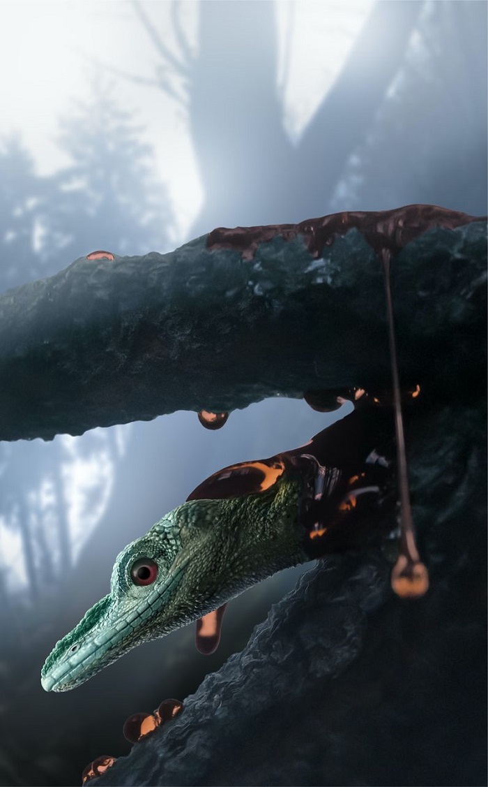 El nuevo espécimen sobre el que trabajaba el segundo equipo también estaba encerrado en ámbar, que contenía el cráneo y partes del esqueleto, y mostraba algunas características morfológicas nunca antes vistas.