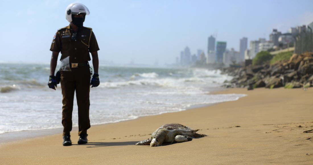 Lalith Ekanayake, ecologista marino y costero, señaló que dada la naturaleza del incendio y la cantidad de productos químicos en el barco, “al menos 400 tortugas podrían haber muerto y sus cadáveres podrían haberse hundido o ser arrastrados a aguas profundas”.