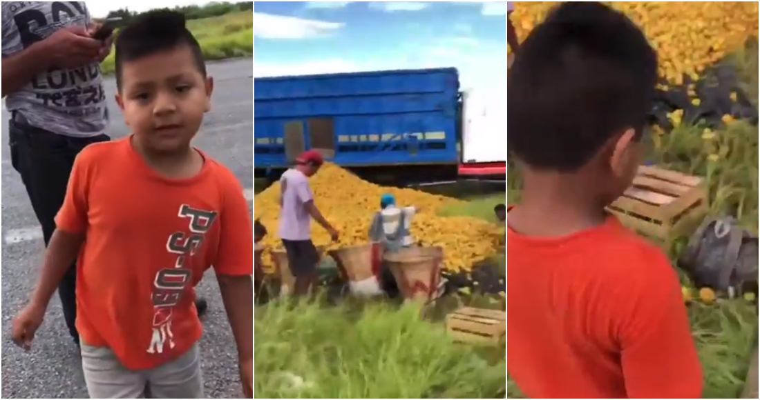 Ciudad de México, 22 de junio (SinEmbargo).– Un niño que intentó comprar 10 pesos de naranjas fue el ejemplo ante otras personas que aprovecharon de robarse la fruta de un camión que sufrió un accidente en Ciudad Victoria, Tamaulipas.