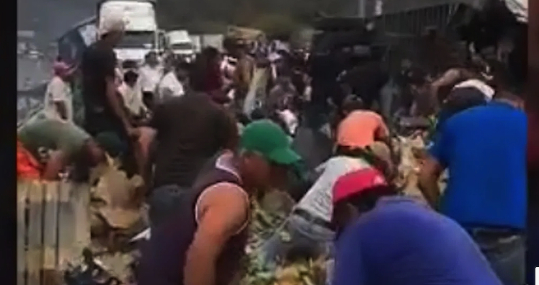 El dueño de la mercancía llegó para detener la rapiña y reunió las naranjas en otro camión para continuar con la entrega.