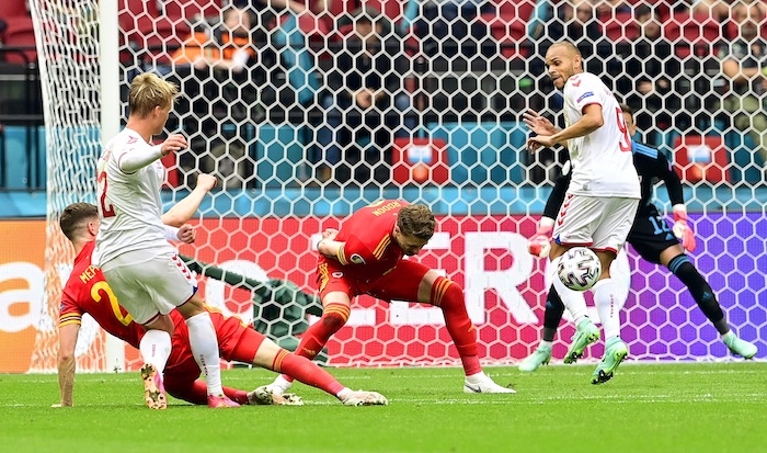 Pero Dinamarca supo esperar mientras País de Gales quemaba sus últimos cartuchos y en los últimos minutos convirtió una sólida victoria en una goleada, con un tanto en el 89 de Maehle, que fusiló la portería galesa poniendo el 0-3 en el marcador, y con un último tanto de Braithwaite al borde del fuera de juego en el 94 que para el 0-4 definitivo.