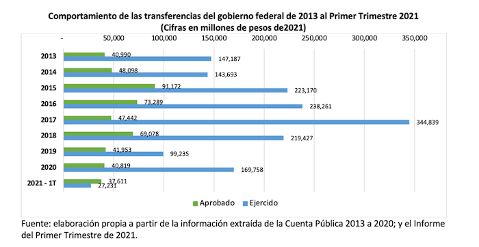 [2] Ver anexo de fideicomisos en el primer informe trimestral del presupuesto 2021. Disponible en: https://www.transparenciapresupuestaria.gob.mx/es/PTP/Datos_Abiertos