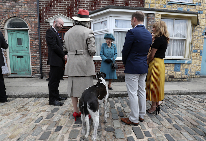 Es la segunda vez que la reina, de 95 años, visita Coronation Street. La primera vez fue a comienzos de la década de 1980, en los estudios originales de la serie en Manchester.