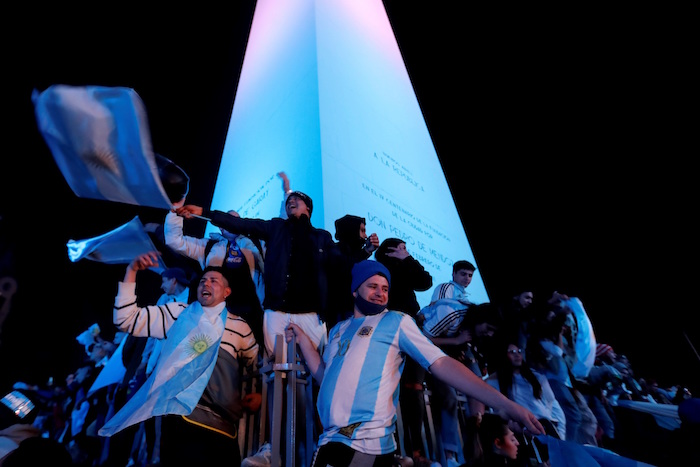 Aficionados de Argentina celebran en el monumento el Obelisco en Buenos Aires. Foto: Juan Ignacio Roncoroni, EFE.