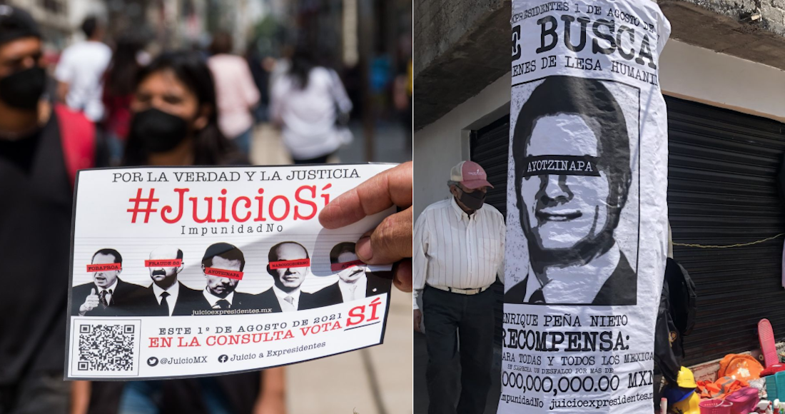 Imágenes que hoy cuelgan de paredes y volantes que se entregan a los ciudadanos en la capital mexicana llevan la misma leyenda escrita: se buscan expresidentes. Las palabras van a acompañadas de las fotografías de Carlos Salinas, Enrique Peña Nieto, Ernesto Zedillo Ponce de León, Vicente Fox Quesada y Felipe Calderón Hinojosa.