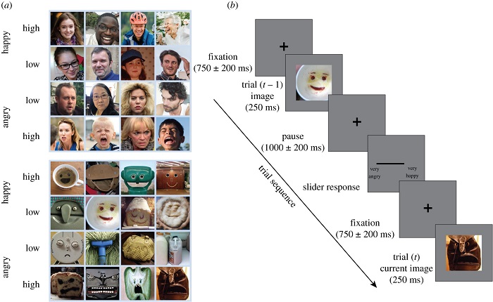 "Lo demostramos presentando secuencias de rostros y haciendo que los participantes calificaran la expresión de cada uno de ellos en una escala que iba del enfado a la alegría", detalla el científico. Lo que resultaba intrigante es que un sesgo conocido a la hora de juzgar los rostros humanos persistía en el análisis de los rostros imaginados inanimados.