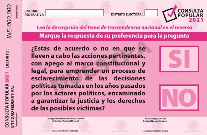 Este viernes, el INE también se pronunció sobre la consulta prevista para agosto. Lorenzo Córdova, Consejero presidente del órgano electoral,  pidió a los políticos  “no confundir” a la ciudadanía puesto que en la consulta se preguntará por “esclarecer las decisiones políticas del pasado” y no directamente por enjuiciar a los expresidentes del país.