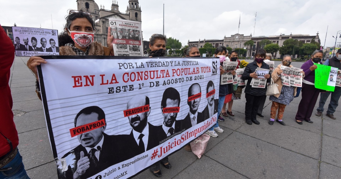 En la consulta popular se busca enjuiciar por corrupción y otros delitos a los expresidentes Carlos Salinas de Gortari (1988-1994), Ernesto Zedillo (1994-2000), Vicente Fox (2000-2006), Felipe Calderón (2006-2012) y Enrique Peña Nieto (2012-2018), por lo que en esta ocasión fue promovida con una serie de fotografías.