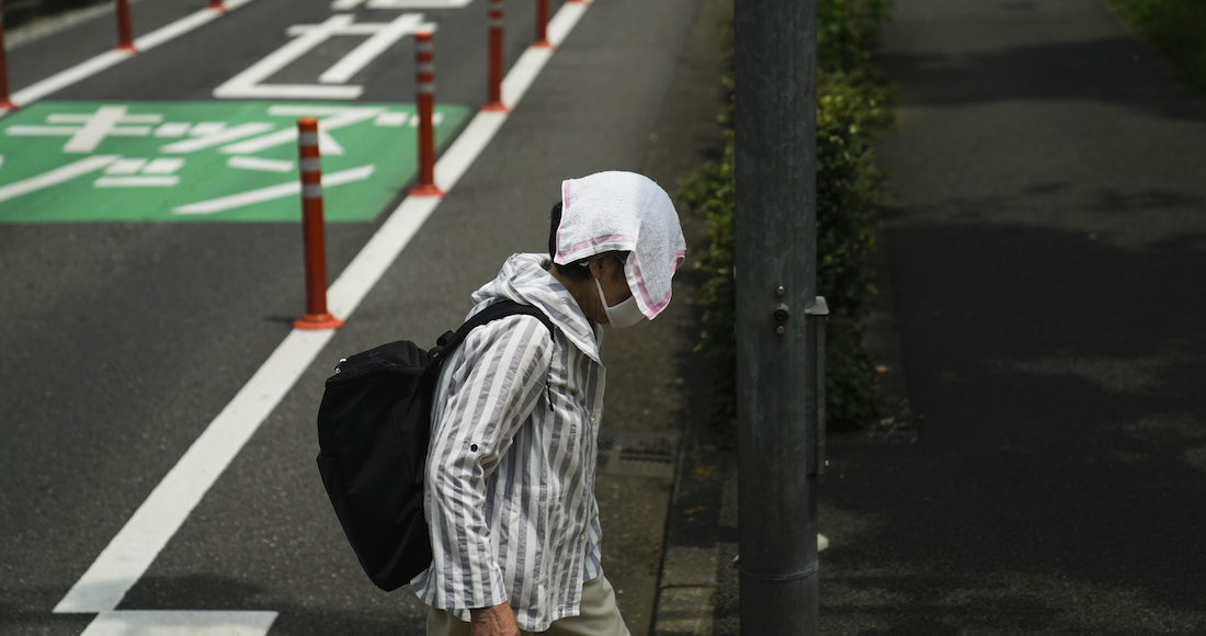 Además de la mascarilla, viste casco protector y unas gafas de sol opacas porque no quiere que su rostro pueda ser rastreado por la policía nipona.