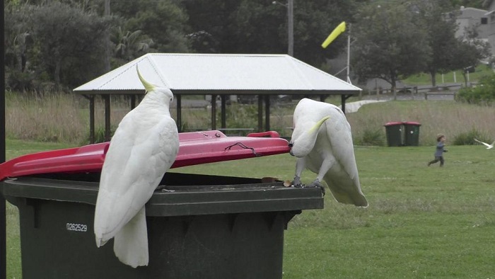 Las cacatúas son aves muy gregarias, se alimentan en pequeños grupos, descansan en grupos grandes y rara vez se las ve solas en Sidney. Aunque muchas especies han disminuido con la expansión de las ciudades australianas, estas audaces y extravagantes aves han prosperado en general.