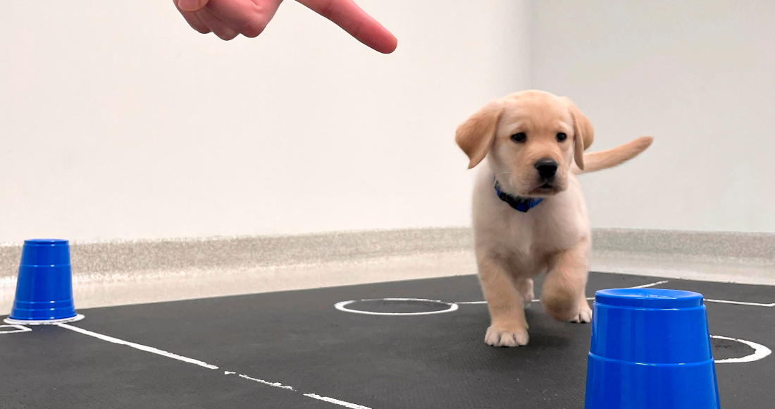 En algunos ensayos, los investigadores señalaron y miraron en la dirección en la que se ocultaba la comida, mientras que en otros, colocaron un pequeño bloque de madera al lado del lugar correcto, un gesto que los cachorros nunca habían visto antes, para mostrarles dónde estaba escondida la golosina.