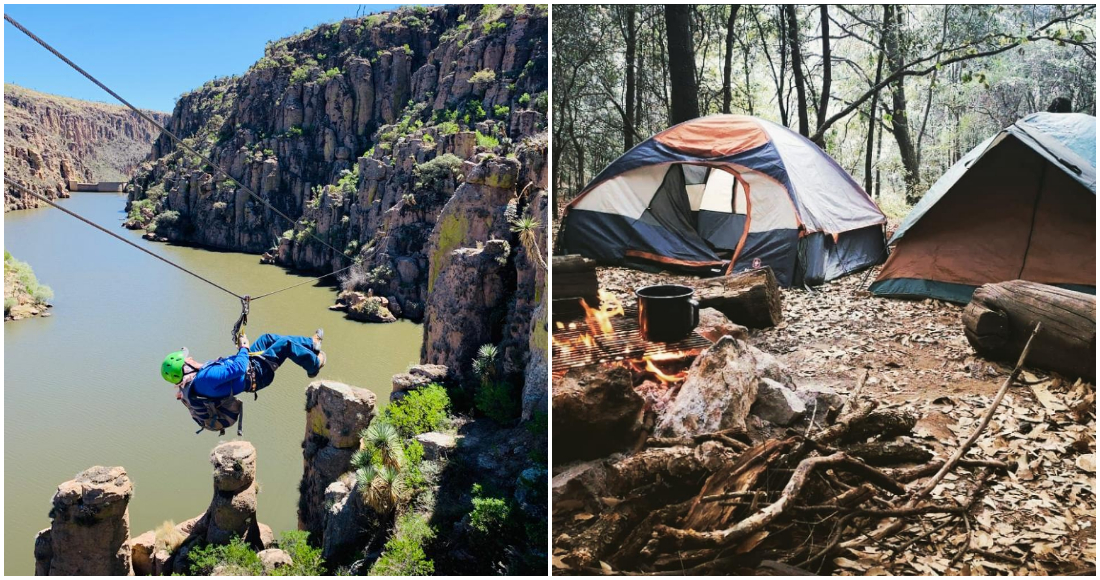 En Jerez, Zacatecas se ubica Cardos Adventure Park, un lugar que ofrece actividades al aire libre en un ambiente de montañas, bosques y formaciones rocosas. Algunas de las actividades extremas que se realizan son: puente colgante, recorrido en cuatrimoto, paseo en kayak, senderismo y campismo; actividades a realizar individualmente o bien en los paquetes que el parque ofrece. Para seguir con experiencias únicas, es posible dormir en medio del bosque, pues Cardos Adventure Park lo permite, ya sea en una cabaña con todos los servicios o en un camping.