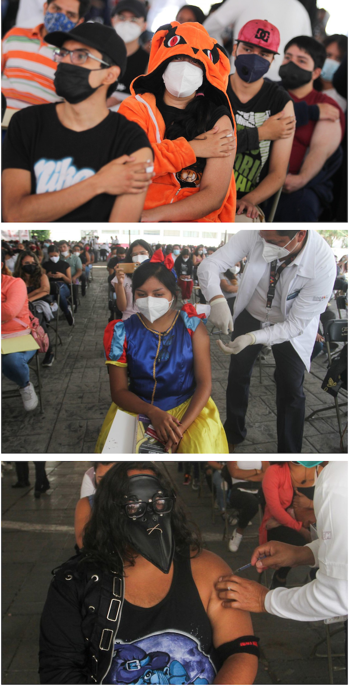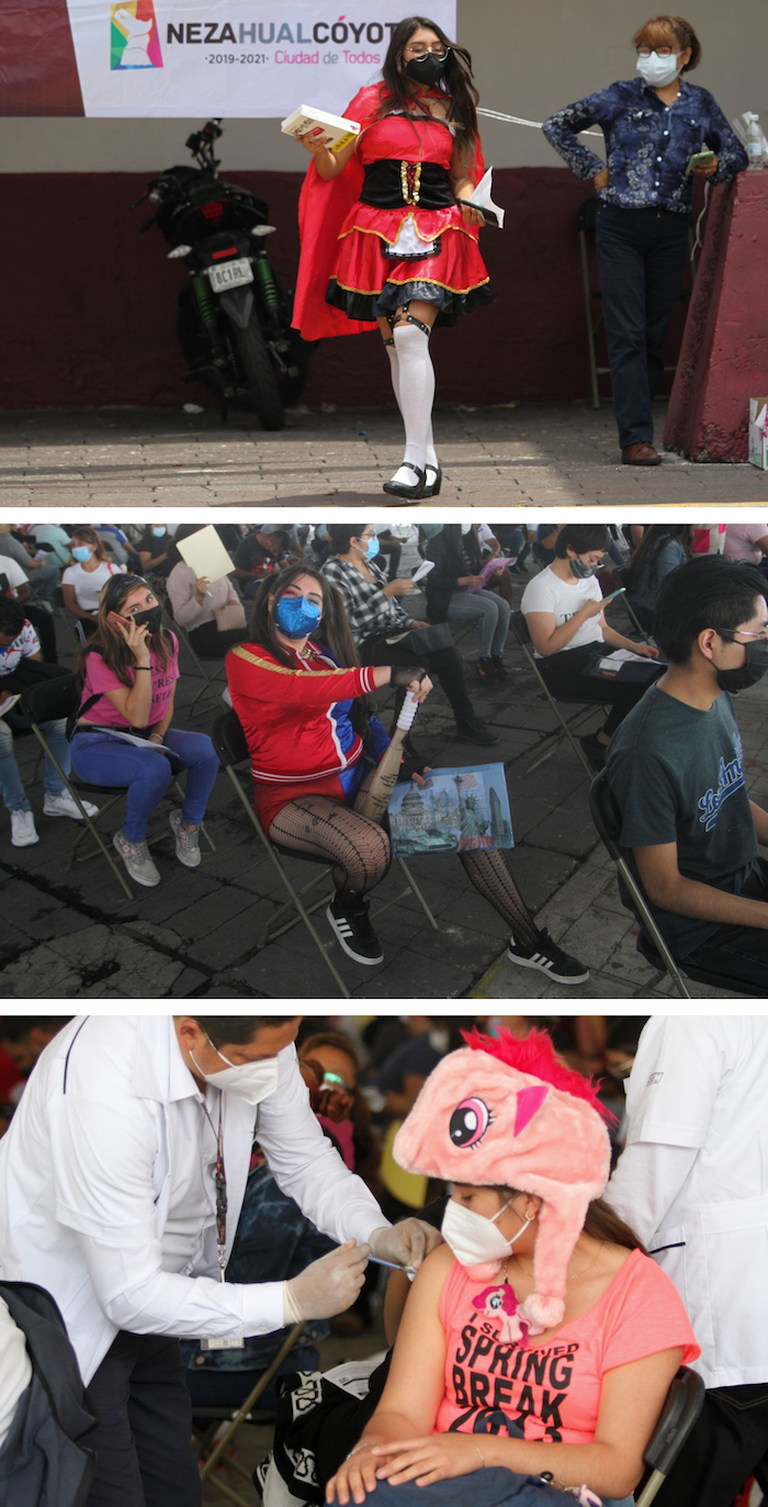 La vacunación en Nezahualcóyotl se convirtió en un concurso de disfraces entre los jóvenes asistentes.