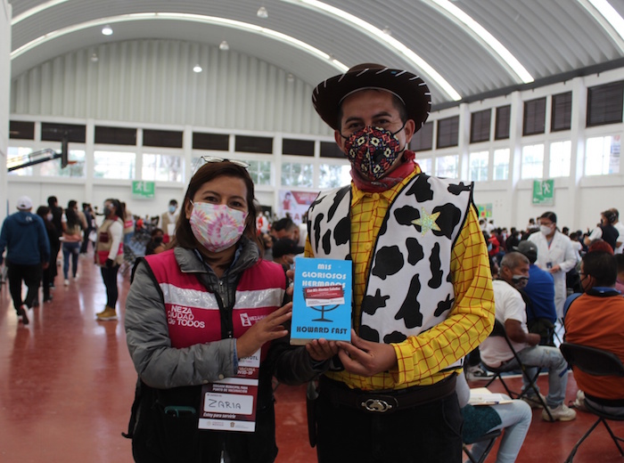 Ciudad de México, 14 de agosto (SinEmbargo).- Jóvenes de 18 a 29 años de Nezahualcóyotl, Estado de México, se disfrazaron para acudir a los módulos de vacunación contra la COVID-19 del municipio, esto luego de que las autoridades locales anunciaron que obsequiarán libros a quienes asistan caracterizados.