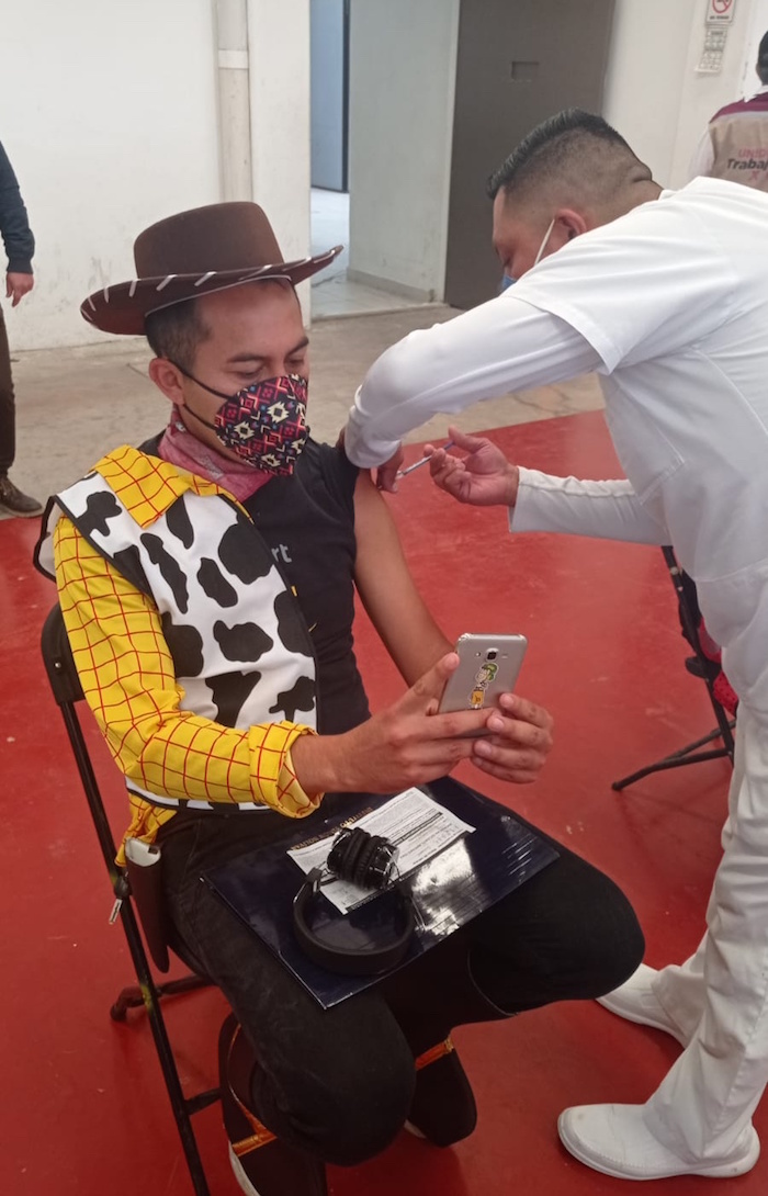 Además, se detalló que es importante que el disfraz permita descubrirse los brazos con facilidad para que puedan recibir la vacuna. y aunque se utilice una máscara, se debe portar cubrebocas en todo momento.