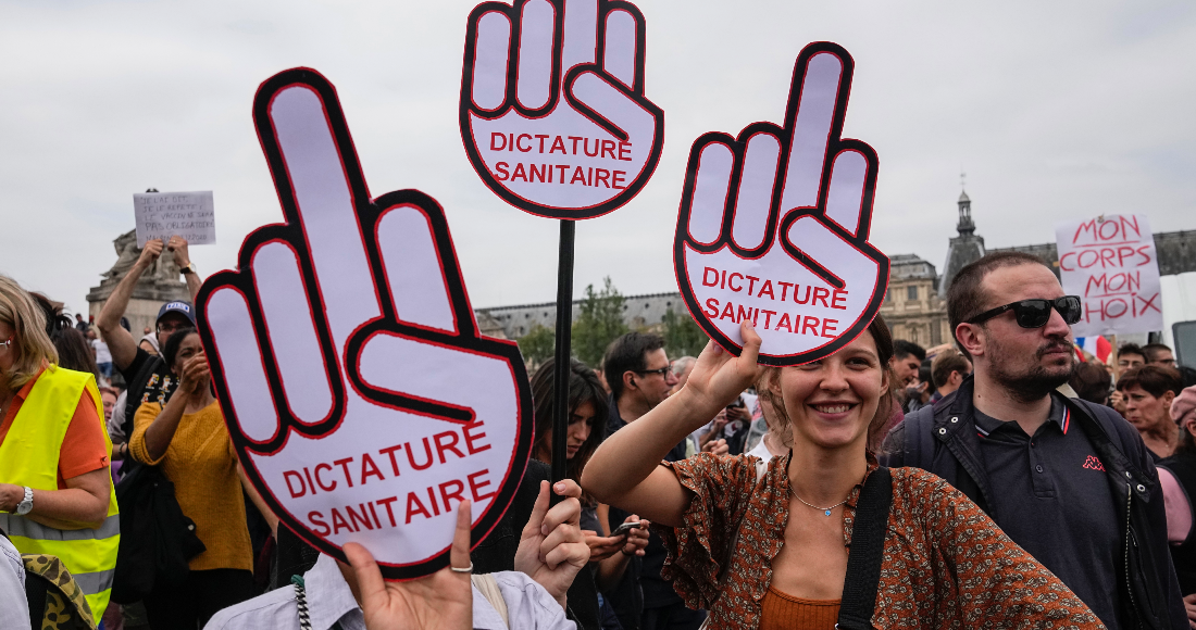 Los contramanifestantes rociaron gas pimienta, según imágenes, y los participantes en la protesta antivacuna proferían amenazas de muerte, de acuerdo con el Times.