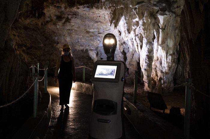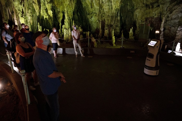 “Debo agradecerle a Perséfone, nuestra robot, dijo cosas muy buenas”, dijo Christos Tenis, un visitante griego. “Estoy impresionado por la cueva. Por supuesto, tuvimos una guía (humana) impecable que explicó muchas cosas. Estoy muy impresionado”.