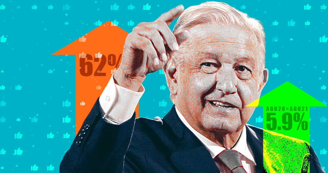 La popularidad del Presidente López Obrador repuntó 5.9 por ciento entre agosto de 2020 y agosto de 2021, con lo que llegará a su Tercer Informe de Gobierno con el apoyo de seis de cada 10 connacionales.