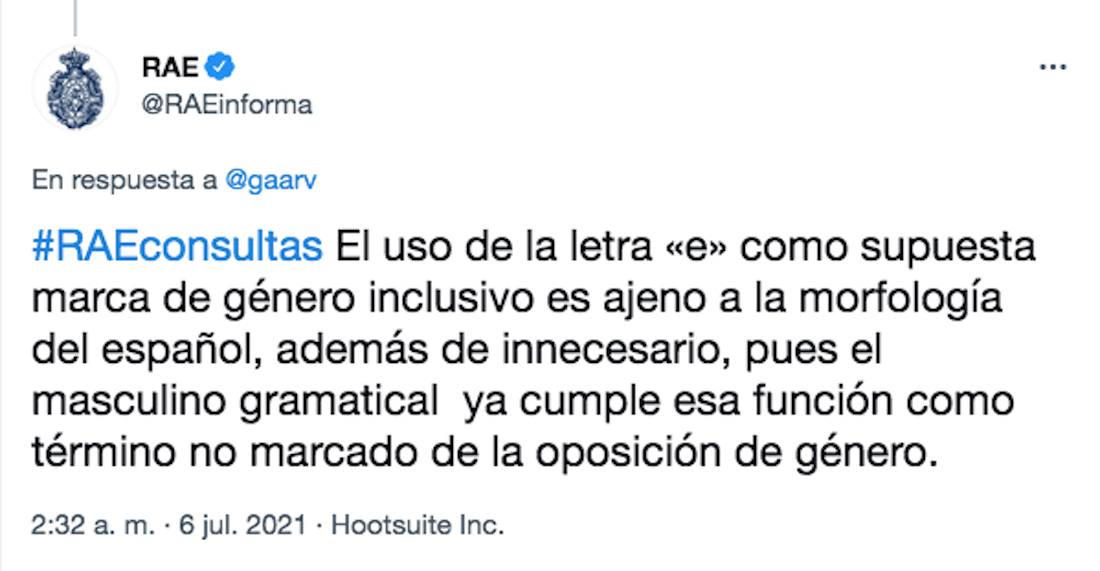 La RAE definía “elle” como un “pronombre de uso no generalizado creado para aludir a quienes puedan no sentirse identificados con ninguno los dos géneros tradicionalmente existentes”.
