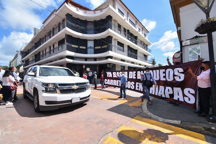 El Gobernador de Chiapas, Rutilio Escandón, informó al inicio de la conferencia que la CNTE, un importante sindicato en la región, bloqueó el vehículo del Presidente, quien casi una hora después se conectó por videollamada.