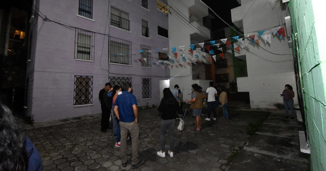 Fotografías y metrajes muestran a la mayoría de personas sin cubrebocas, con poca distancia y algunas sin abrigarse, todo lo anterior debido a la premura por salir a un espacio seguro ante el fuerte movimiento que se sintió.