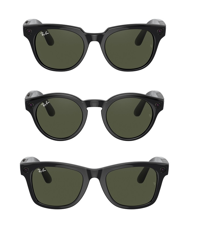 Composición de tres fotografías cedidas por Facebook donde se muestran los modelos de gafas inteligentes (de arriba abajo) Meteor, round y Wayfarer del gigante de las redes sociales y el fabricante de gafas de sol Ray-Ban, que tienen un precio de 299 dólares y están a la venta por internet y en tiendas físicas de Estados Unidos, Reino Unido, Canadá, Australia, Irlanda e Italia. Foto: EFE/Facebook