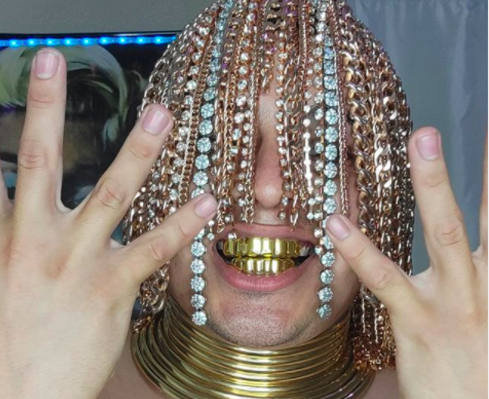 A través de sus videos de TikTok, en los que desde abril se le puede apreciar con el nuevo look, asegura ya estar cansado de que le digan que sus cadenas no son de oro y se quita uno de los implantes para ponerlo en un vaso con agua para demostrar que si flota es de plástico. La cadena que se quitó el cráneo quedó en el fondo del vaso con agua.