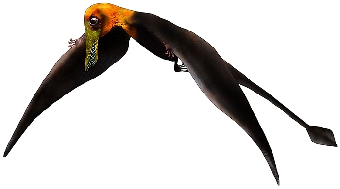 Una cola alargada terminada en una punta con forma de rombo y dientes puntiagudos dirigidos hacia el frente son algunas de las peculiares características de los ranforrincos, un tipo de pterosaurio encontrado cerca de la ciudad de Calama y que habitó el megacontinente Gondwana hace unos 160 millones de años.